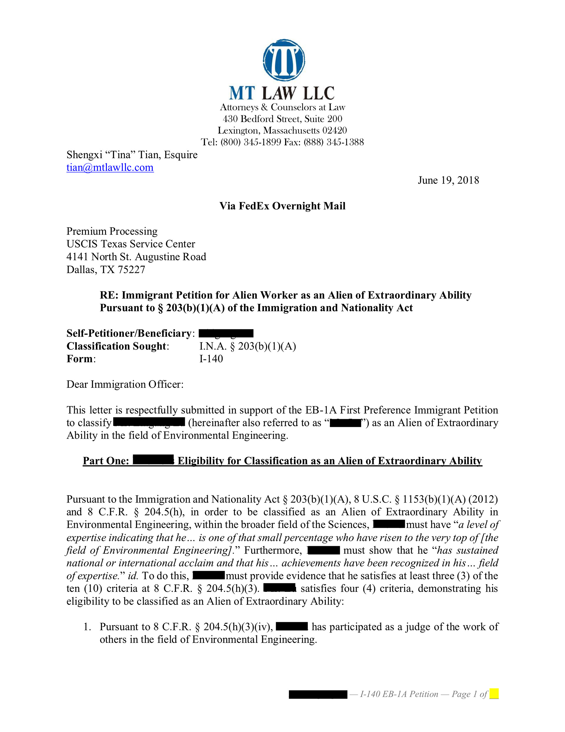 The summer before I started college, I worked as a paralegal at MT Law. I wrote, copy-edited, compiled, and filed immigration petitions to the USCIS.
